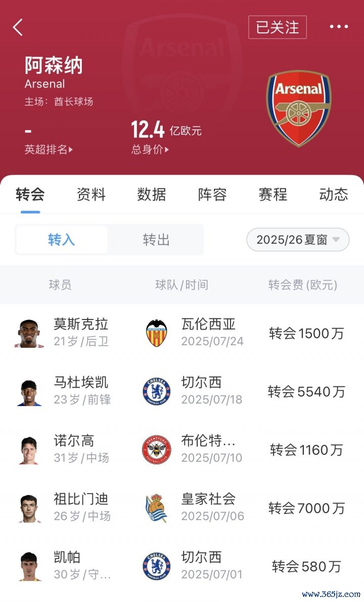 25/26赛季夏窗于今,阿森纳已破钞1.578亿欧,引进5名新援凯帕、祖比门迪、诺尔高、马杜埃凯、莫斯克拉。若是算上未官宣的约克雷斯,阿森纳夏窗引援用度将冲突2.2亿欧。