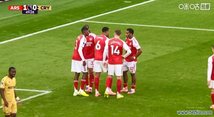 有套路!开定位球前枪手球员聚在沿途商议政策,随后加布头球中柱