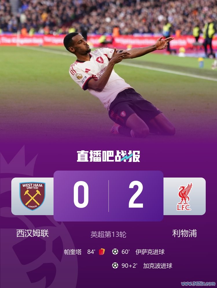 英超第13轮,利物浦2-0客胜西汉姆闭幕了近期的连败,伊萨克和加克波立功,帕奎塔抗议判罚连吃两黄被罚下场。