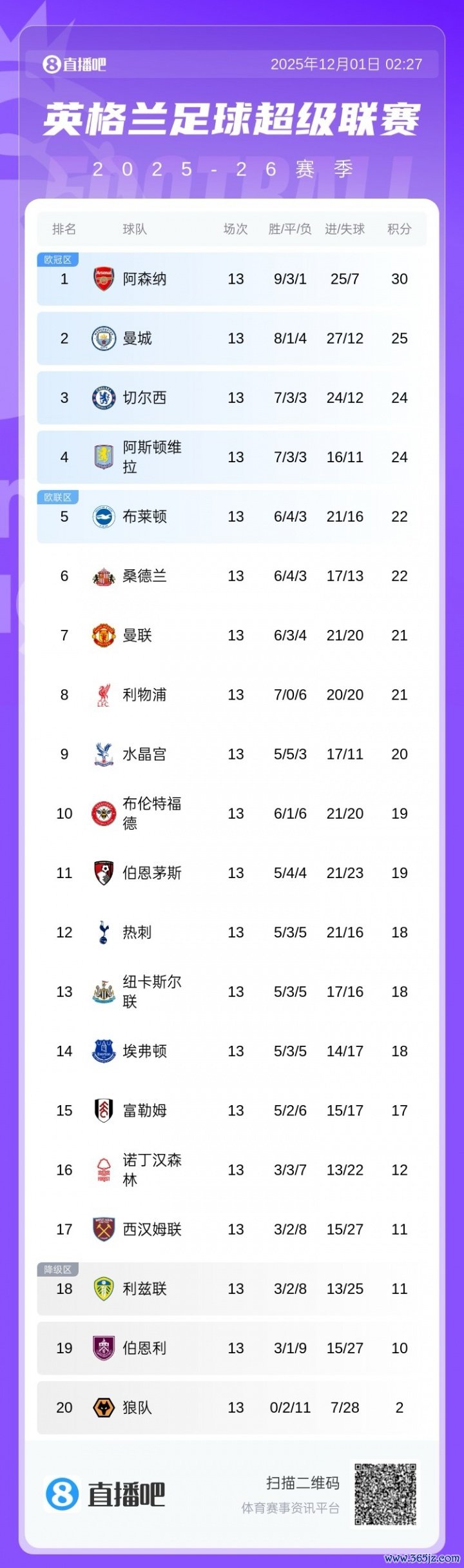 英超最新积分榜:枪手5分领跑,曼城第二,切尔西第三,与维拉同分。