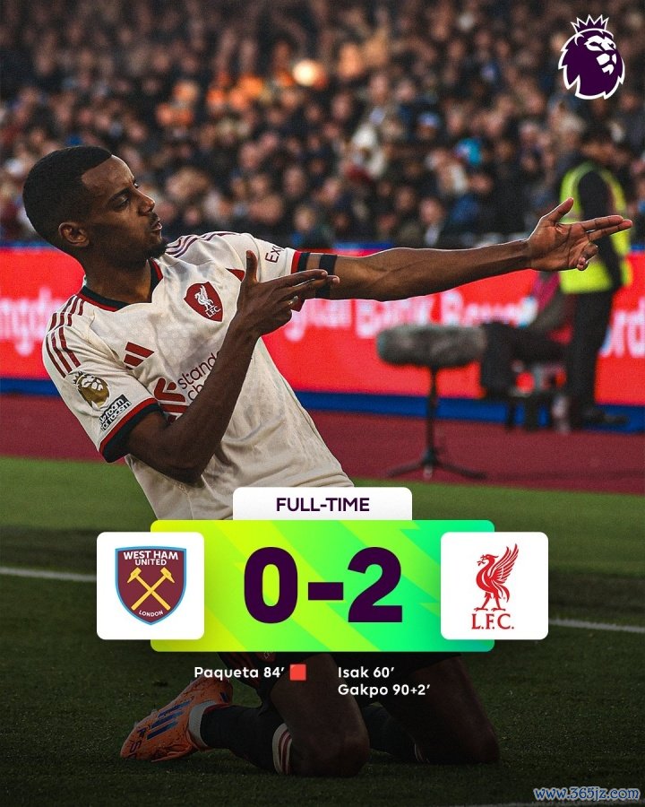 闭幕3连败!利物浦2-0西汉姆联 伊萨克破门维尔茨蓄意加克波传射