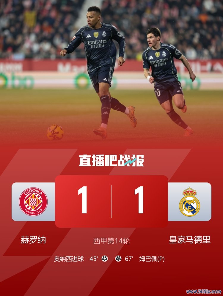 西甲第14轮,皇马1-1客平赫罗纳让出榜首,姆巴佩点射破门+进球被吹。