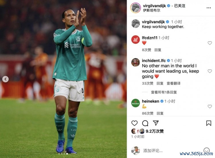 赛后,赤队列长范迪克更新莽撞媒体晒照配文饱读吹球队,写说念:让咱们持续共同勤劳!