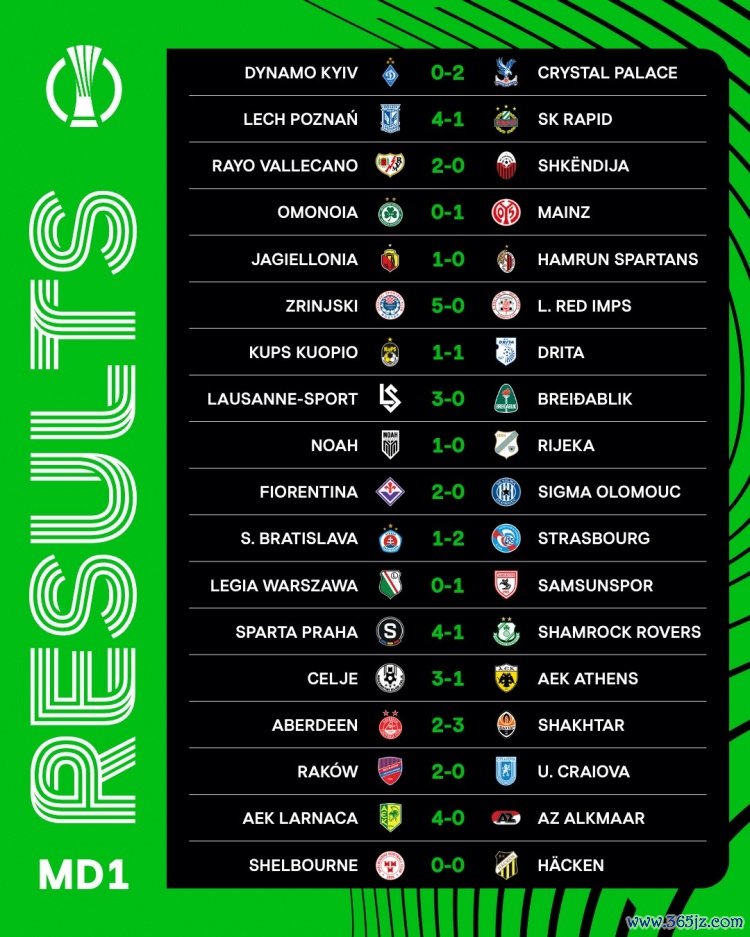 10月3日讯 欧协联首轮比赛战罢,水晶宫2-0打败基辅迪纳摩,巴列卡诺、佛罗伦萨、好意思因茨取胜,阿尔克马尔4球惨败。