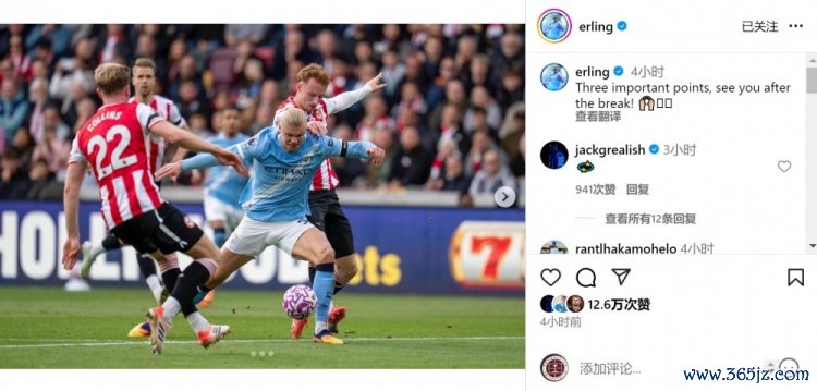 哈兰德社媒晒出比赛相片庆祝班师,配文:“攻击的三分,我们休赛期之后见!”