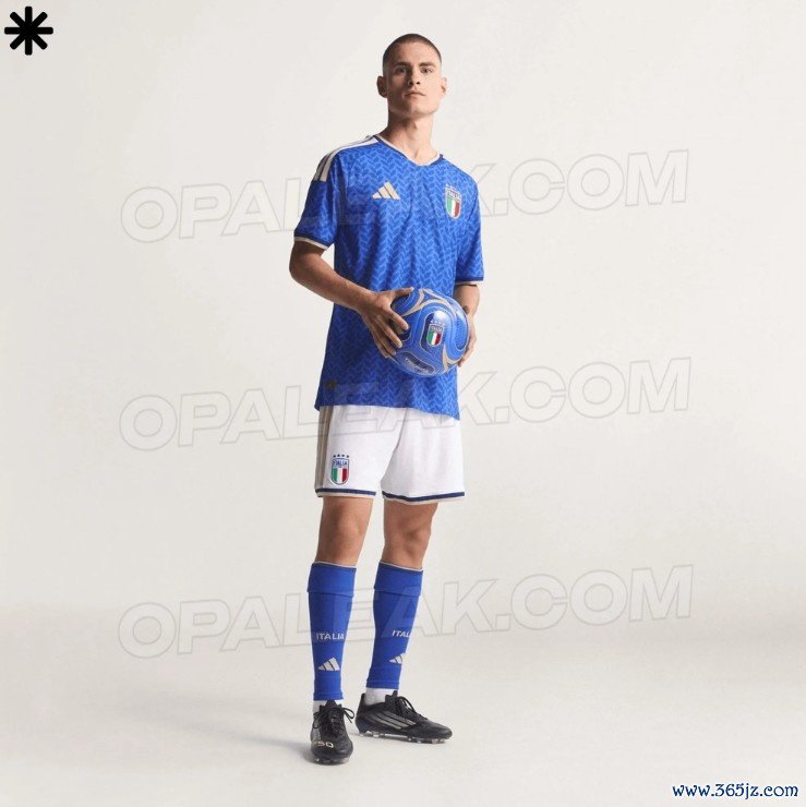阿迪达斯记号性的加大版三条纹位于肩部,而阿迪达斯和意大利足协的徽章则继承金色,贯注地卓绝在蓝色底色上。