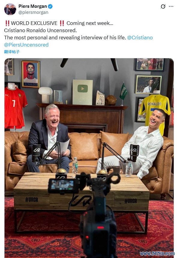 10月30日讯 着名主握东说念主皮尔斯-摩根在社媒预报了我方下周将发布与葡萄牙巨星C罗进行的专访节目。