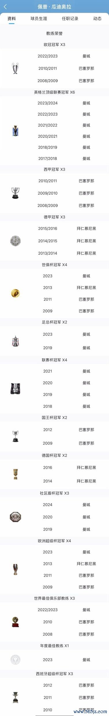 瓜迪奥拉合手教活命主要荣誉一览↓