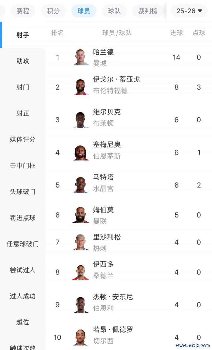 英超进行到第11轮,哈兰德14球领跑弓手榜,朝上第二名的伊戈尔·蒂亚戈6球。
