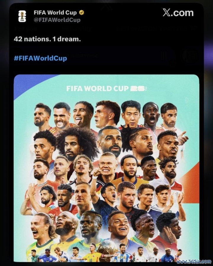 联系新闻:聚拢!天下杯官方晒首张纵贯42队海报:梅西、姆巴佩、哈兰德在内