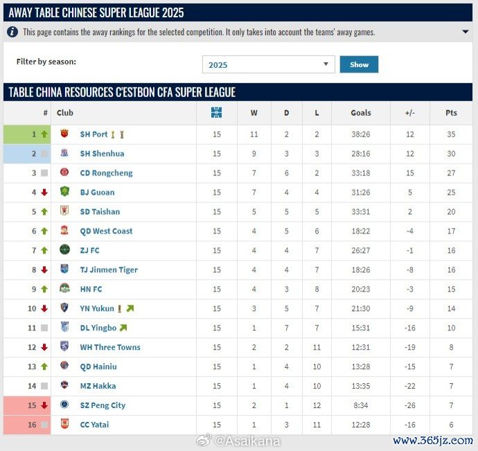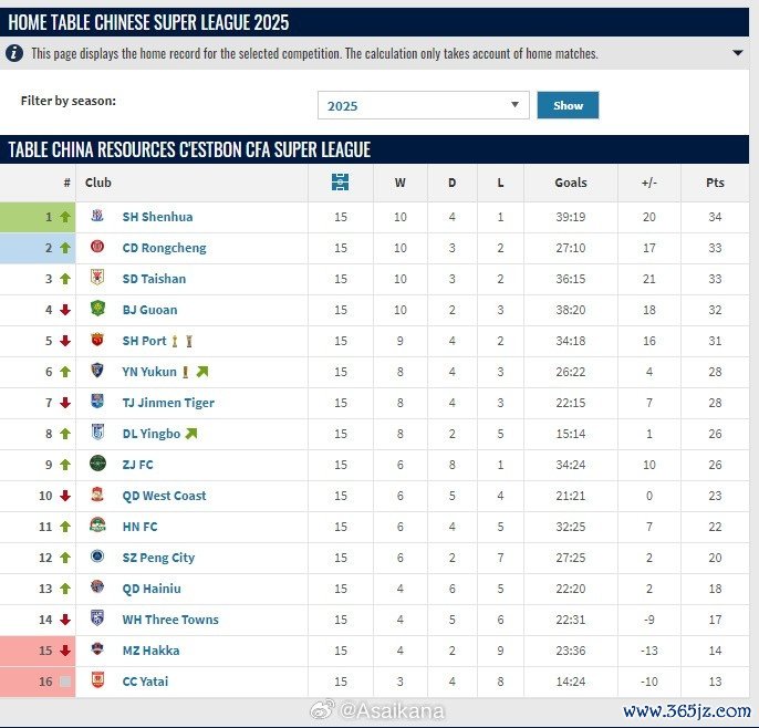 中超道理道理积分榜:主场比赛积分榜&客场比赛积分榜