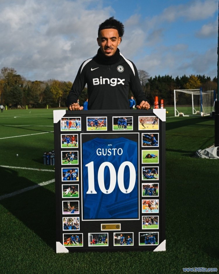 此役是古斯托为切尔西出战的第100场比赛,他共计打进1球,助攻14次。古斯托获赠蓝军糊口百场驰念球衣,切尔西社媒晒出他与驰念球衣的合照。