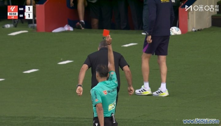比赛补时阶段,弗里克不悦裁判,两黄变一红被罚下,他将无缘下轮的国度德比。