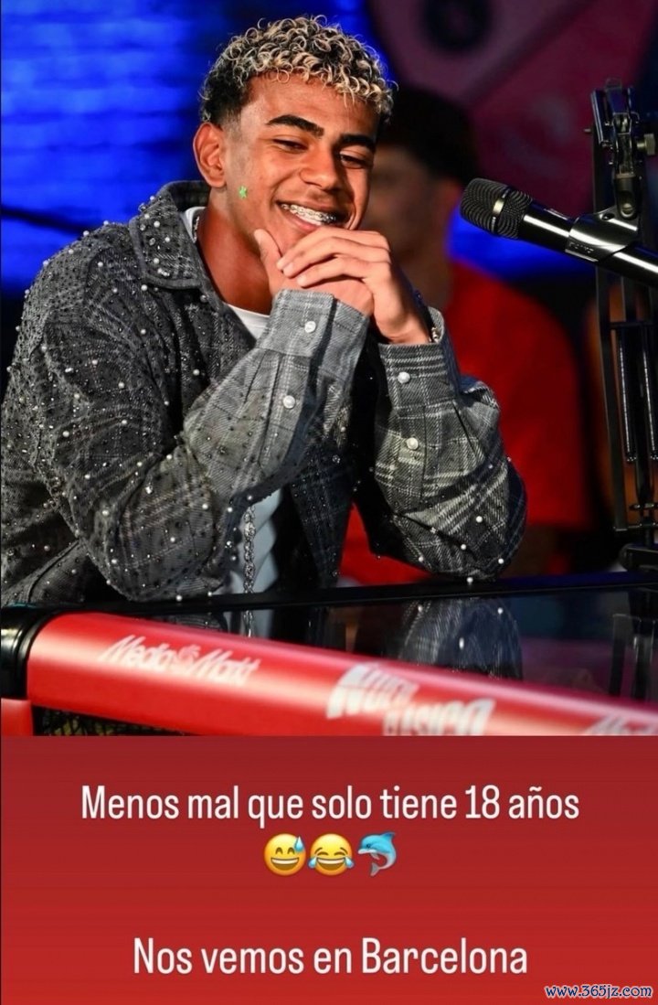 亚马尔父亲晒出亚马尔像片配文:幸好他唯有18岁,巴塞罗那相遇。