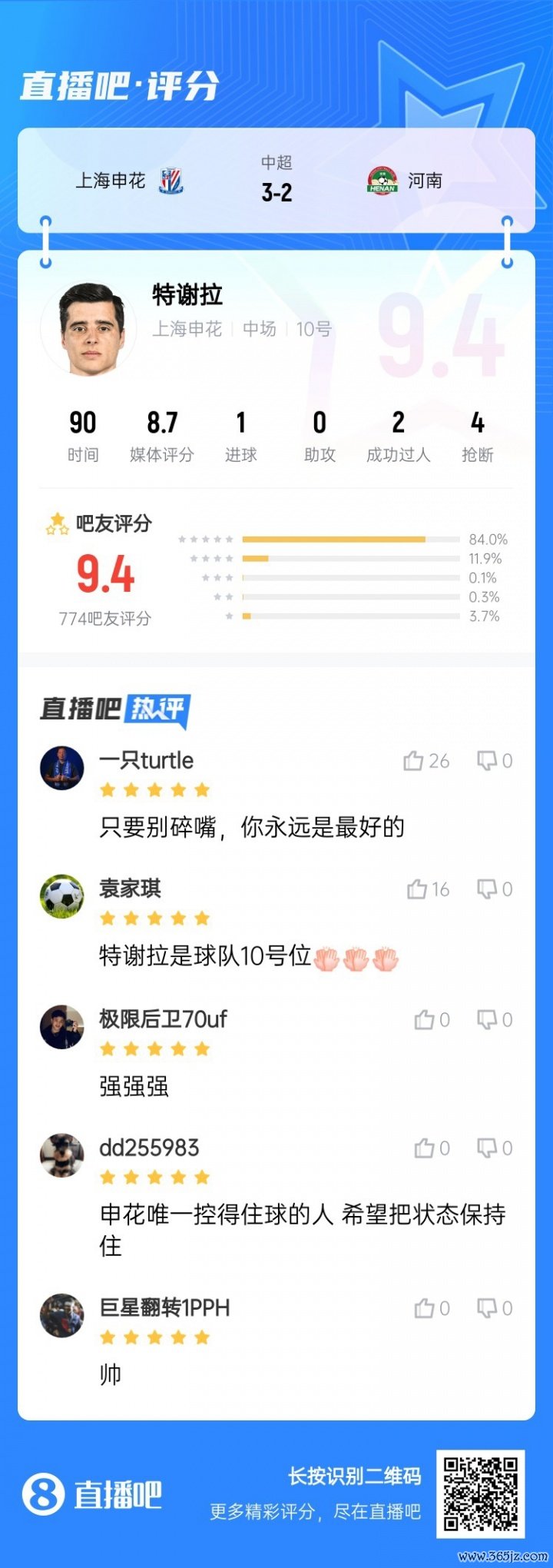 【】中超第二轮最好球员:克雷桑毫无悬念当选,评分9.9!