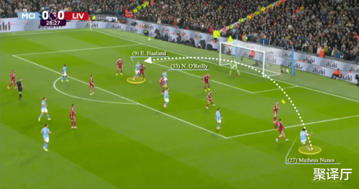 驻扎队员阐明到这些球员的危急性,便会向曼城蹙迫队员靠近,这反过来又会在边路腾出空间,让努内斯和奥莱利在无东谈主盯防景况下接球。