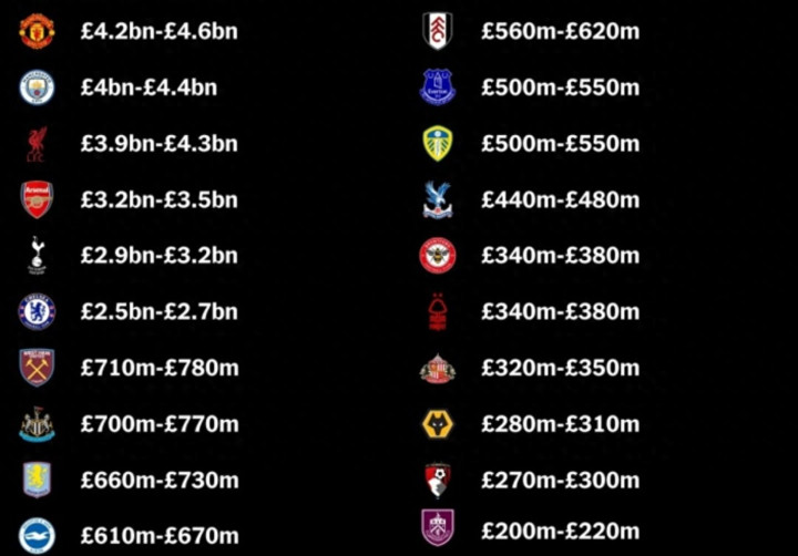 12月27日,TA发布了英超各支球队的估值情况,这份榜单由TA搜检了英超各家俱乐部的财务情况,而且概括了关联数据,其中包括Football Benchmark、福布斯、Kinnaird和Sportico等关联媒体的数据,给出的这份榜单,如故具备一定的巨擘性的。在这份榜单当中,曼联以46亿英镑的估值领跑英超,排行第2的则是曼城的44亿英镑,紧随自后的是43亿的利物浦,这亦然所有越过40亿英镑的英超俱乐部。