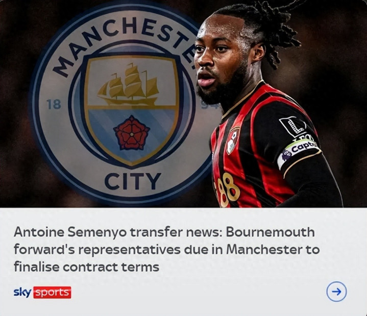 罗马诺发推:曼城将再次和伯恩茅斯就塞梅约的转会张开谈判,以争取在本周敲定这笔走动。