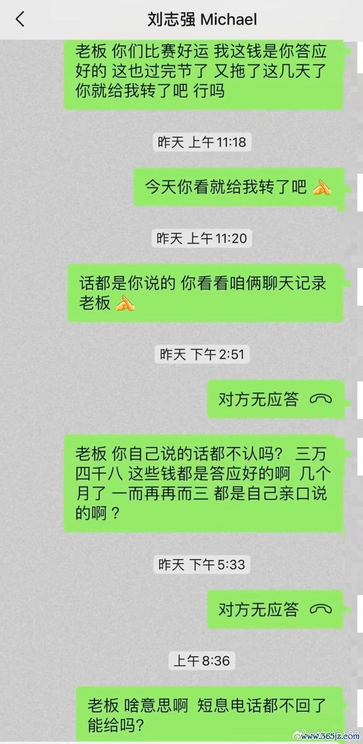 纪勇发文:“❗️❗️大连涵瑜足球俱乐部雇主刘志强!微信不来电话不接 拖欠球职工资34800元!从八月份于今一分钱莫得给!期间屡次要钱 总所以多样事理推脱!恳求各方垄断公道!”
