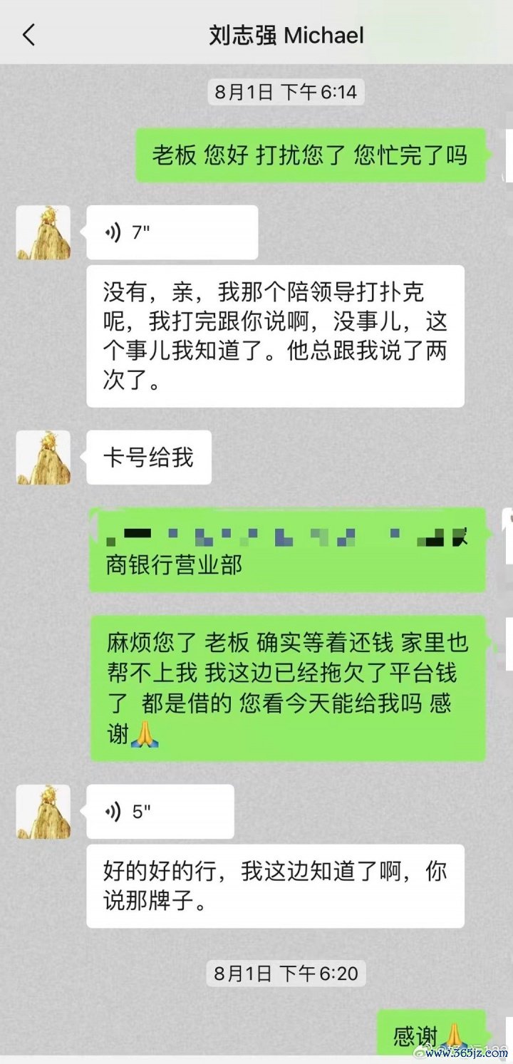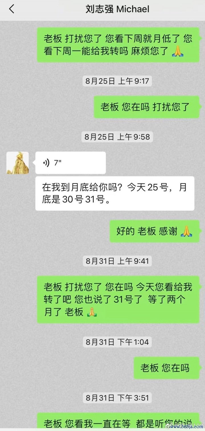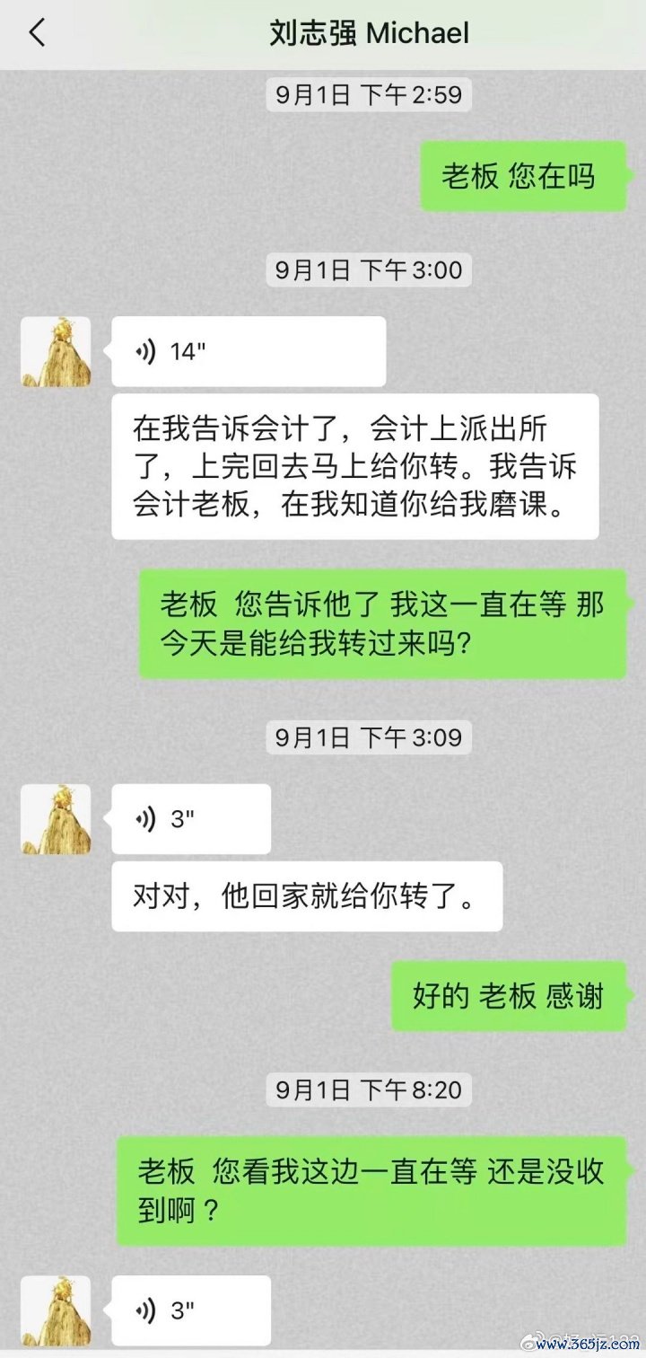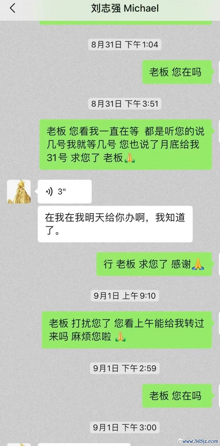 10月14日,纪勇晒讨薪的聊天纪录↓