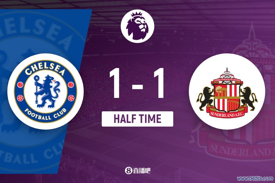 上半场伤停补时3分钟,半场放置,切尔西暂1-1桑德兰。