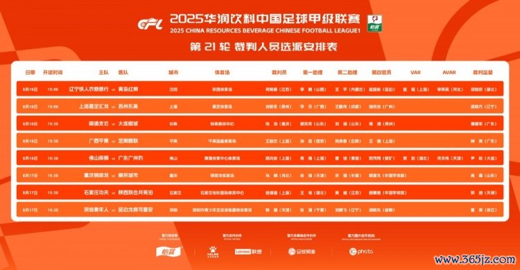 8月16日讯 中甲联赛第21轮裁判名单公布,其中辽宁铁东谈主vs青岛红狮,佛山南狮vs广东广州豹两场比赛启用VAR。