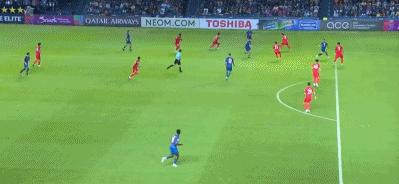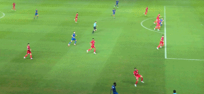 第14分钟,素巴猜突入禁区抢在出击的颜骏凌之前铲射破门,1比0!