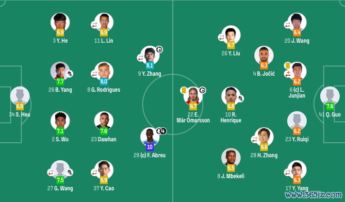 时尚:8-恩戈姆(F)、10-罗德里格(F)、26-刘云(46'21-魏祥鑫)