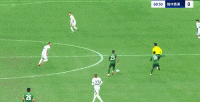 第5分钟,张玉宁接直塞突入禁区变成单刀扣门,皮球被郭全博挡出。