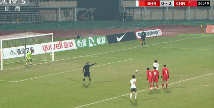第25分钟,巴林门将易卜拉欣子虚,帅惟浩断球捅射击中门柱,万项得球被易卜拉欣绊倒,主裁判判罚点球,万项一蹴而就,3比0!